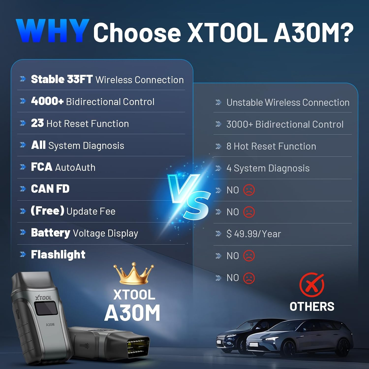2025 XTOOL A30M V2.0 Wireless OBD2 Scanner Diagnostic Tool with Free Updates